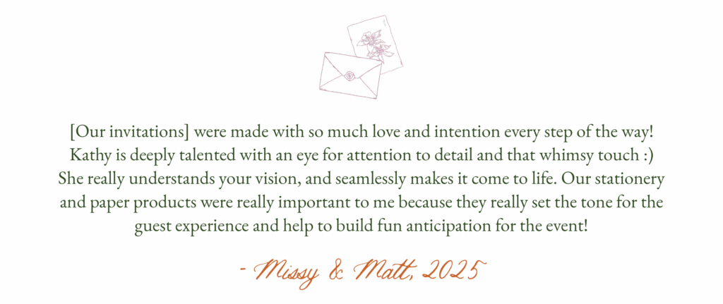 Dear Kathryn offers both custom and semi-custom invitation options, depending on your timeline, budget, and design needs:
